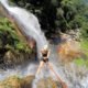 A rocha faz uma espécia de canaleta natural com alguns veios de cristais onde os participantes sobem pisando e se apoiando. Quando está molhado, o que é muito comum, com certeza se torna bem mais delicado e perigoso. Por isso nós sempre aconselhamos no mínimo se fixar uma corda e fazer um “corrimão” para ajudar no equilíbrio e mesmo assim é necessário ter muita atenção. Não é um momento de “brincadeirinhas”.